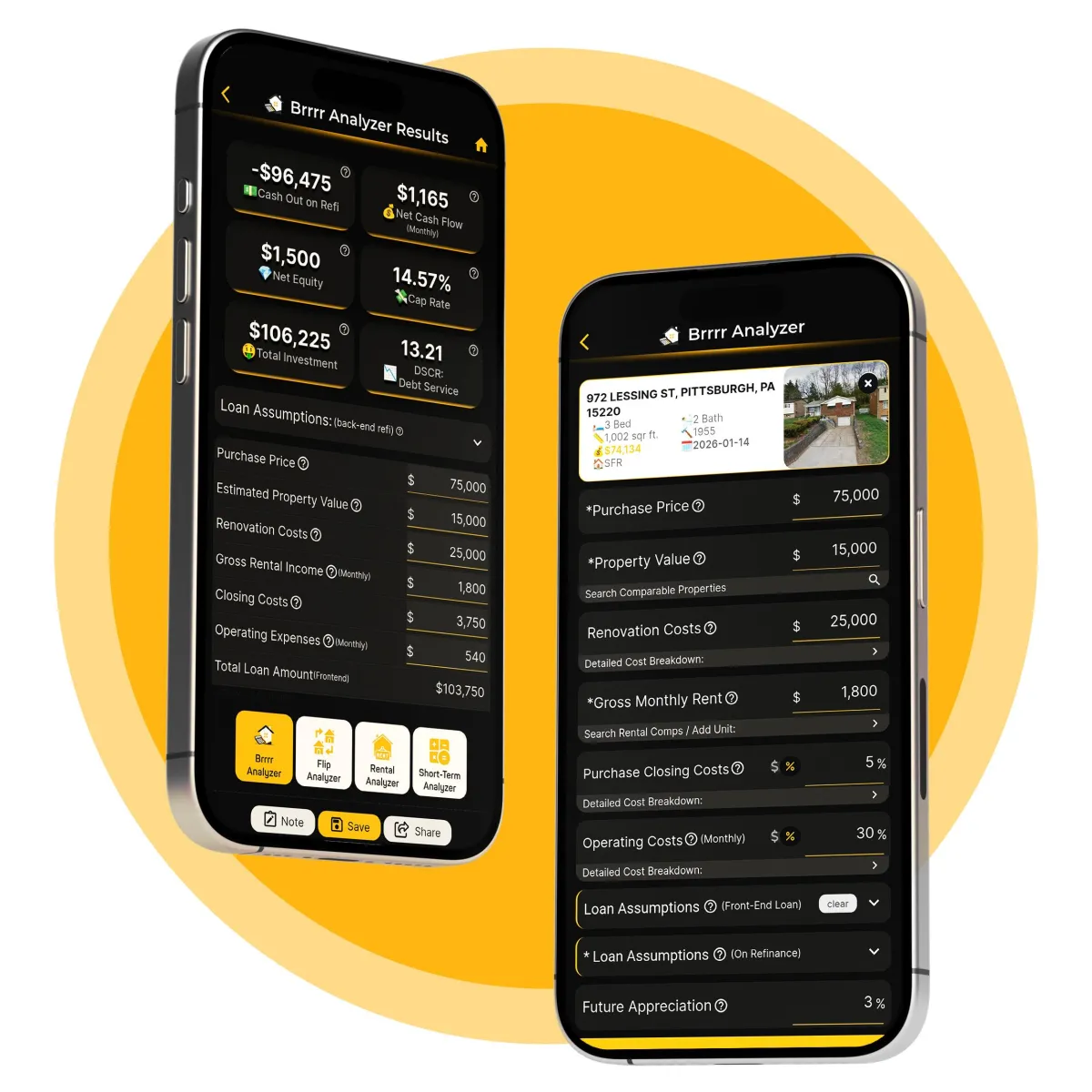 We’re real estate investors and innovators who’ve lived the grind of analyzing BRRRRs, flips, rentals, and wholesale deals. We built this app from the experience if thousands of deals and 950 units of our own. We created this tool to help you break down the numbers fast, stay confident in your decisions, and close more profitable deals.